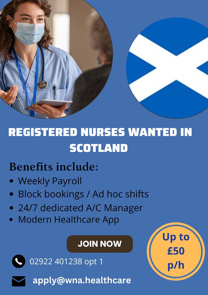 WNA Healthcare has been provided with extra demand by NHS Hospitals in Scotland. If you would like to join a multi-framework agency which offers you more benefits than just pay - please contact us now!
